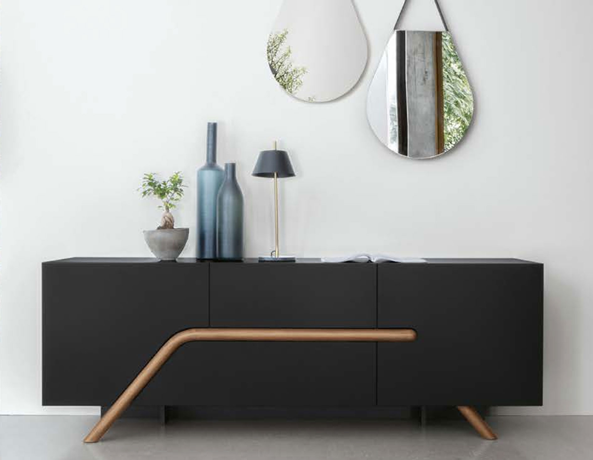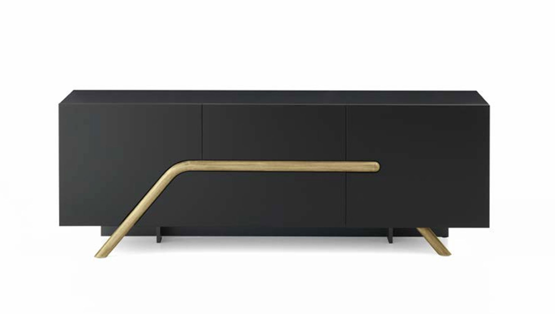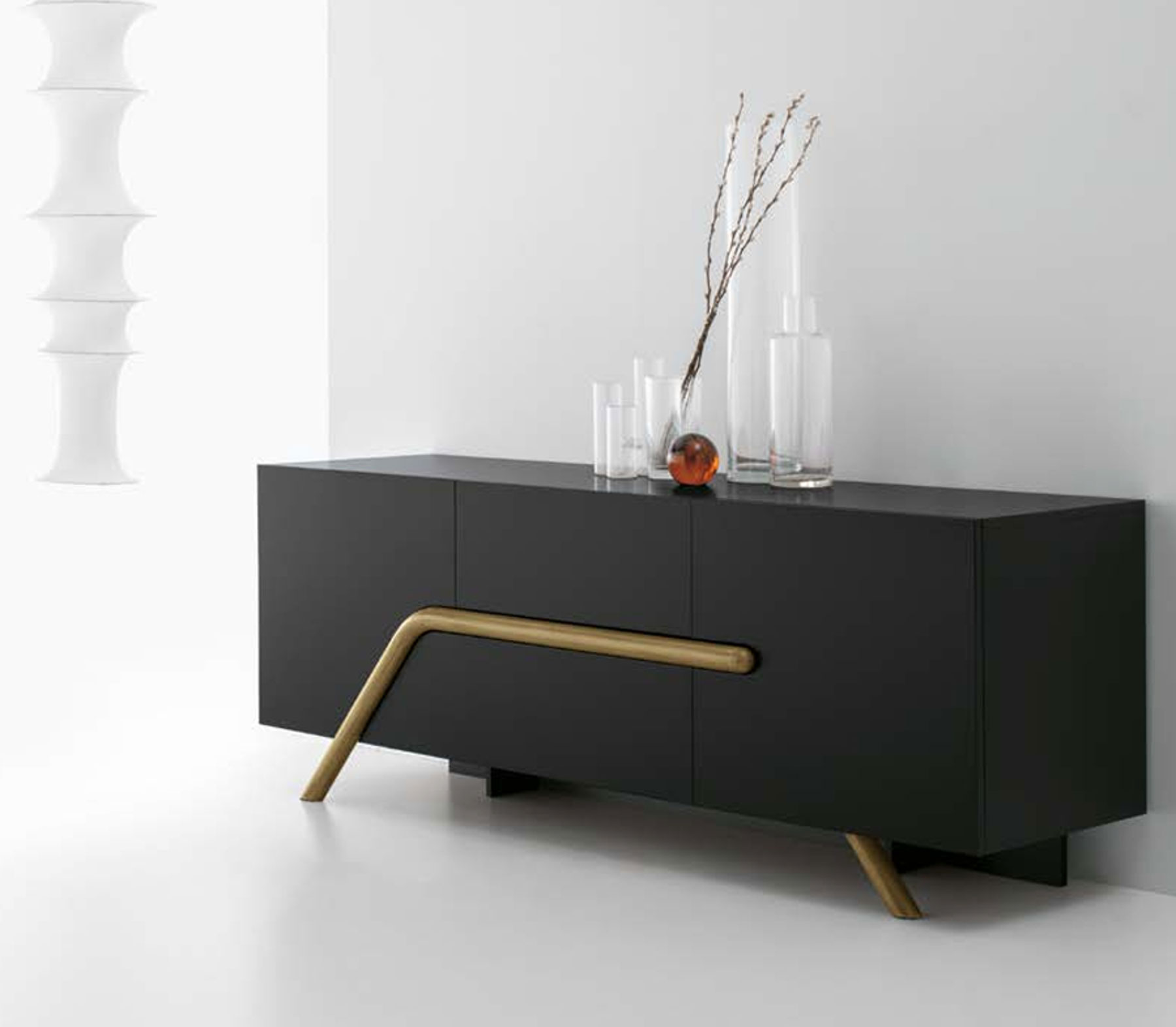 Madia in laccato con due ante laterali e due cassetti centrali.
