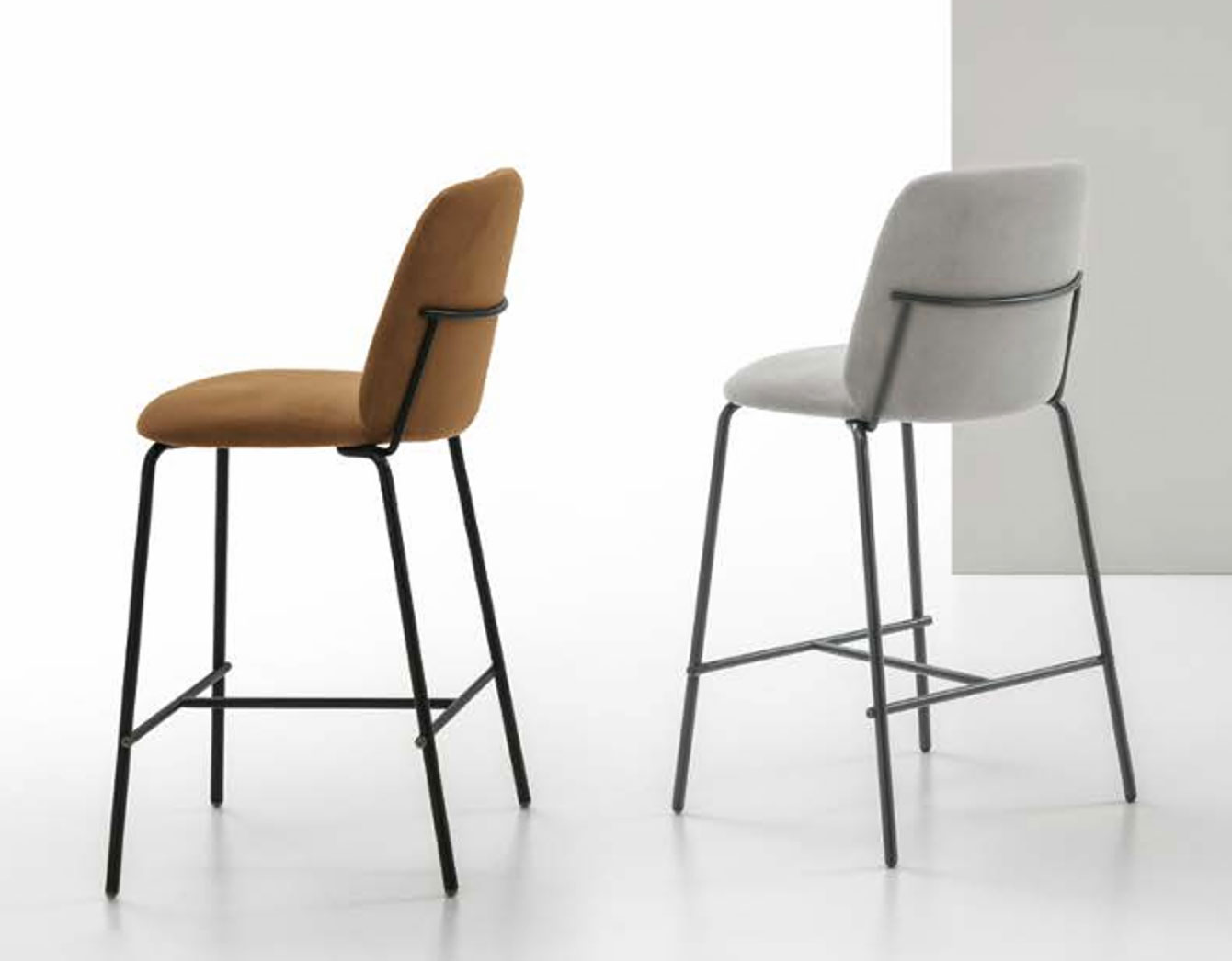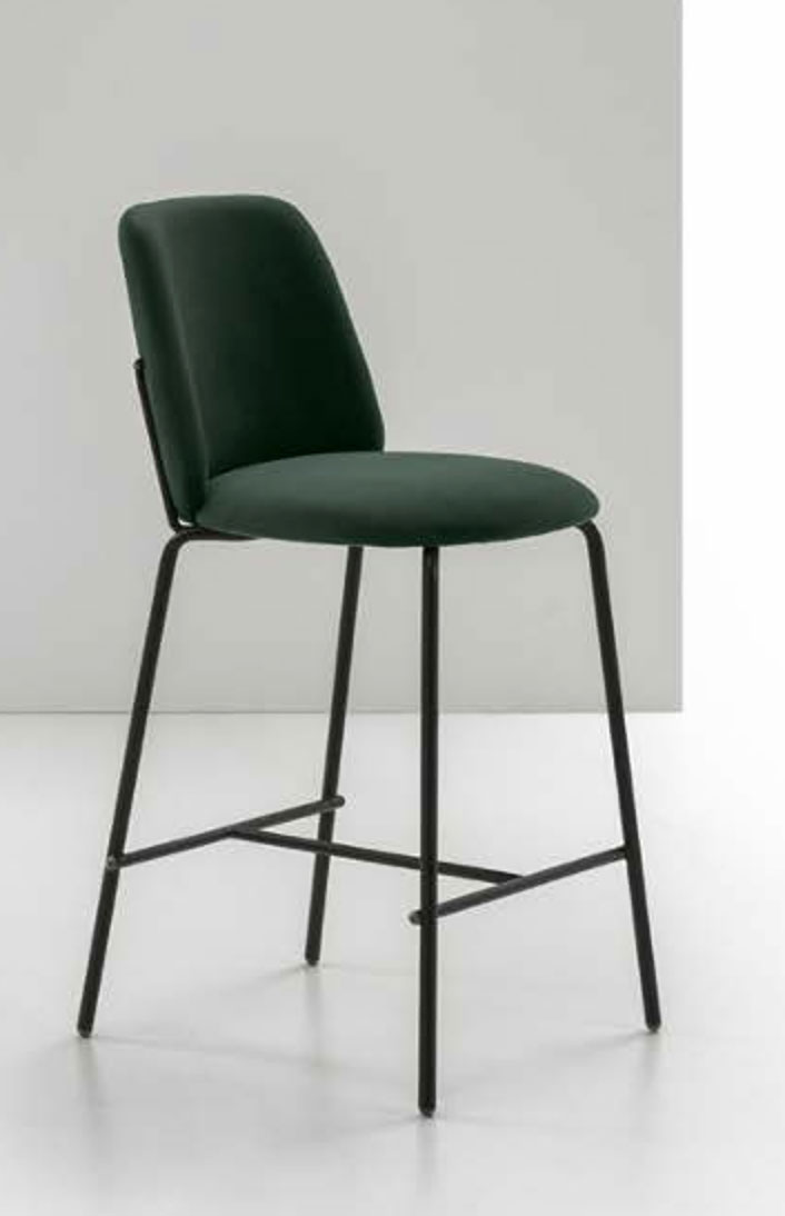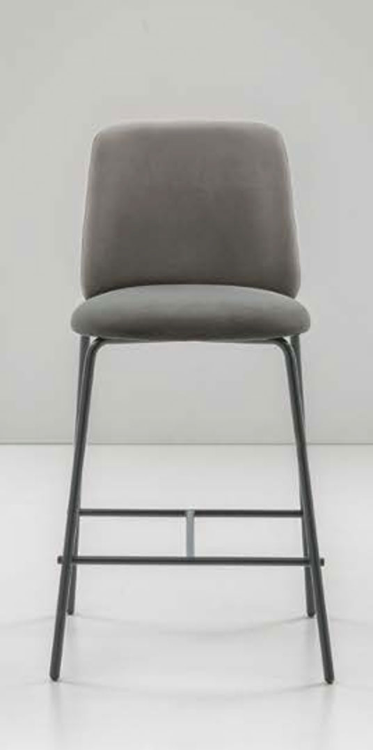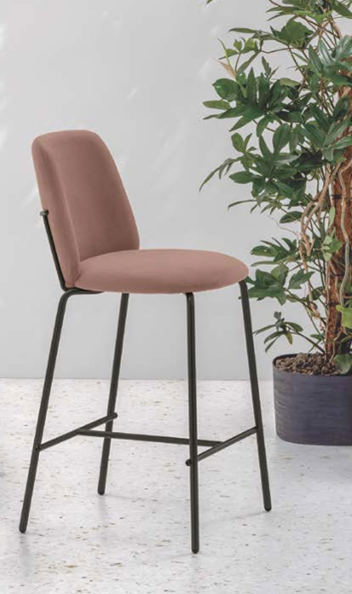 Sgabello fisso con struttura in metallo verniciato. Imbottitura in morbido tessuto microfibra effetto velluto.