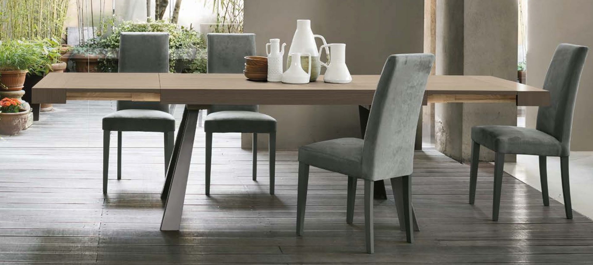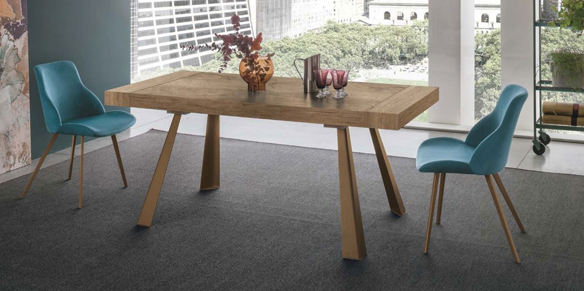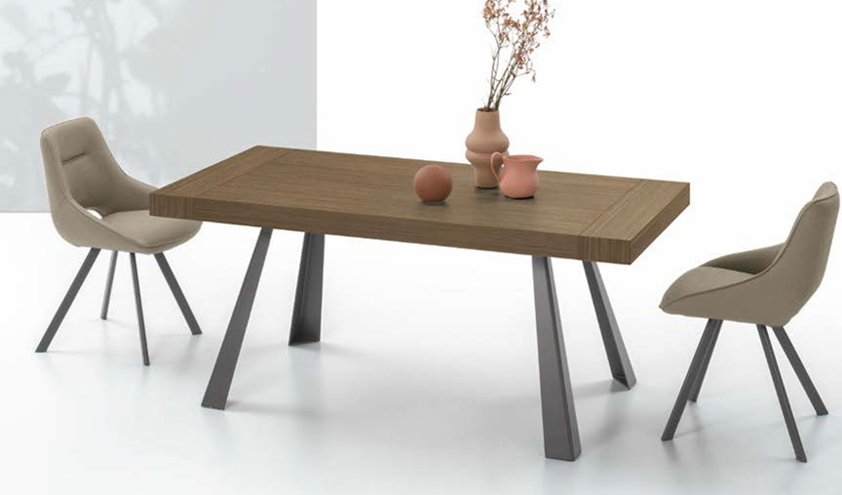 Tavolo allungabile con struttura in metallo verniciato. Piano ed allunghe in laminato.