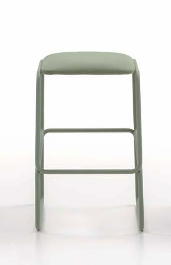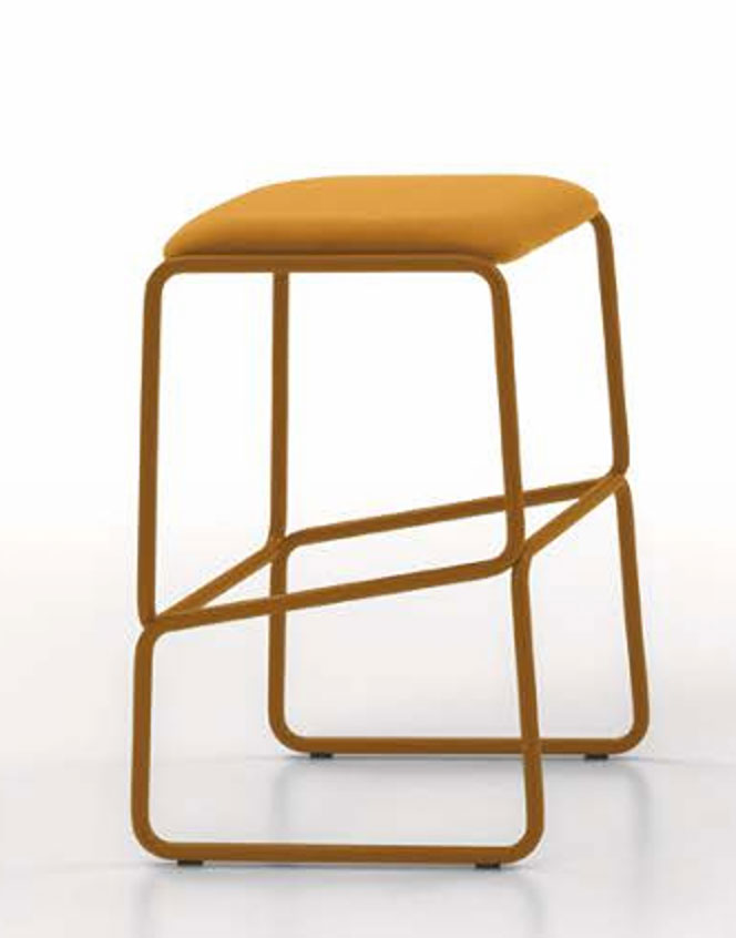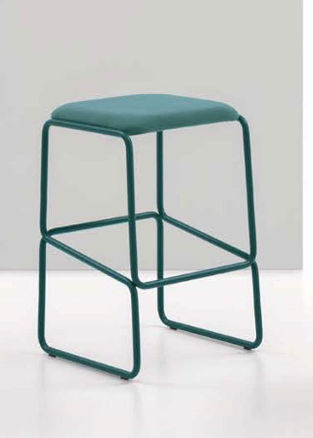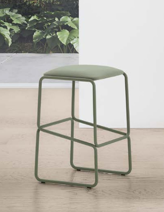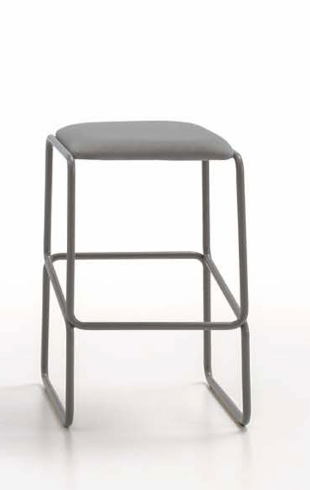 Sgabello fisso con struttura in metallo verniciato. Imbottitura in morbido tessuto microfibra effetto velluto.