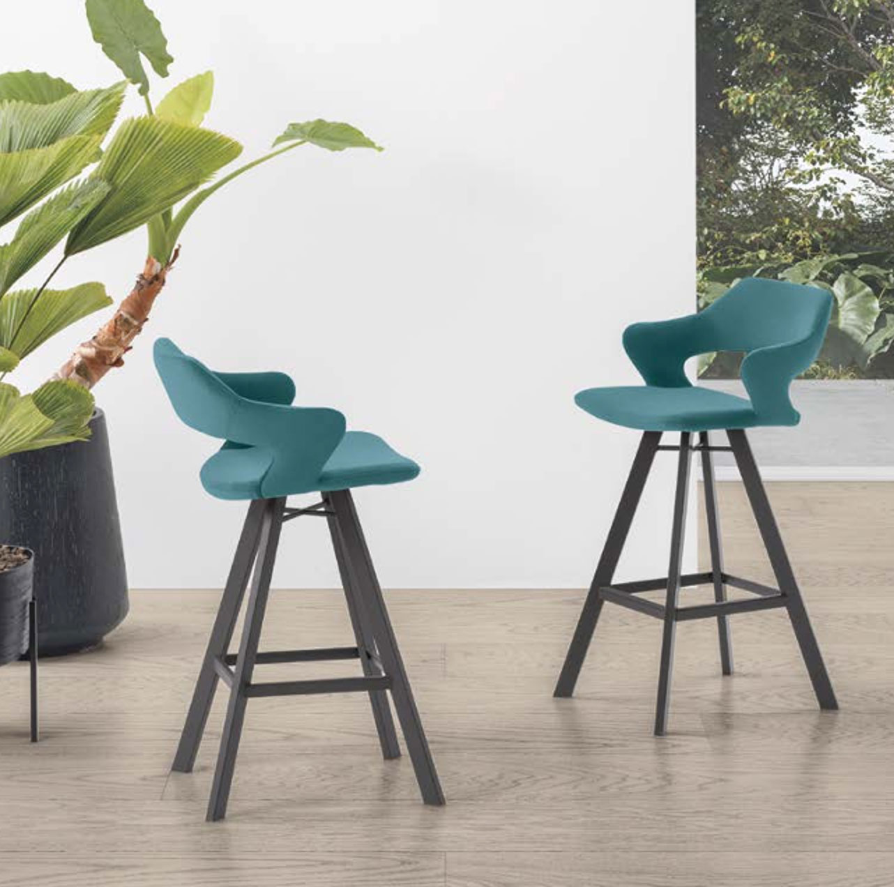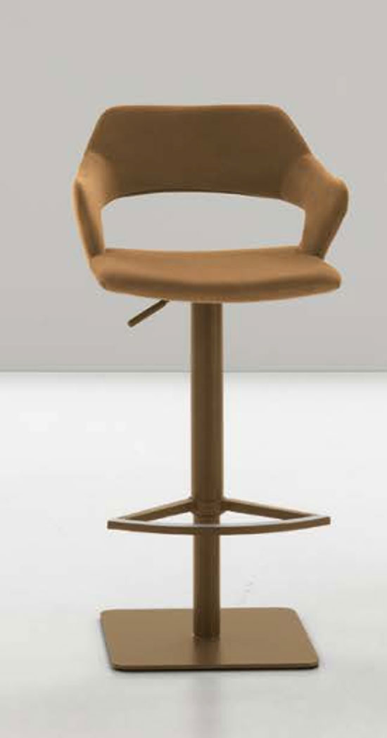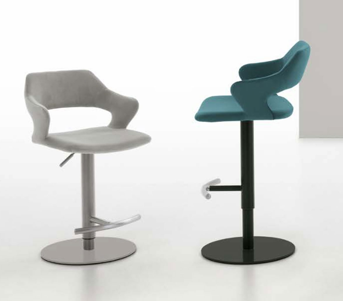 Sgabello fisso o regolabile con struttura in metallo verniciato. Imbottitura in morbido tessuto microfibra effetto velluto.