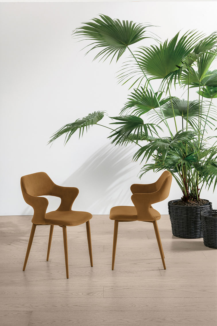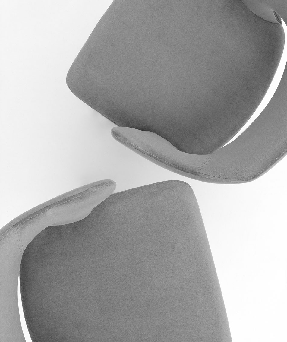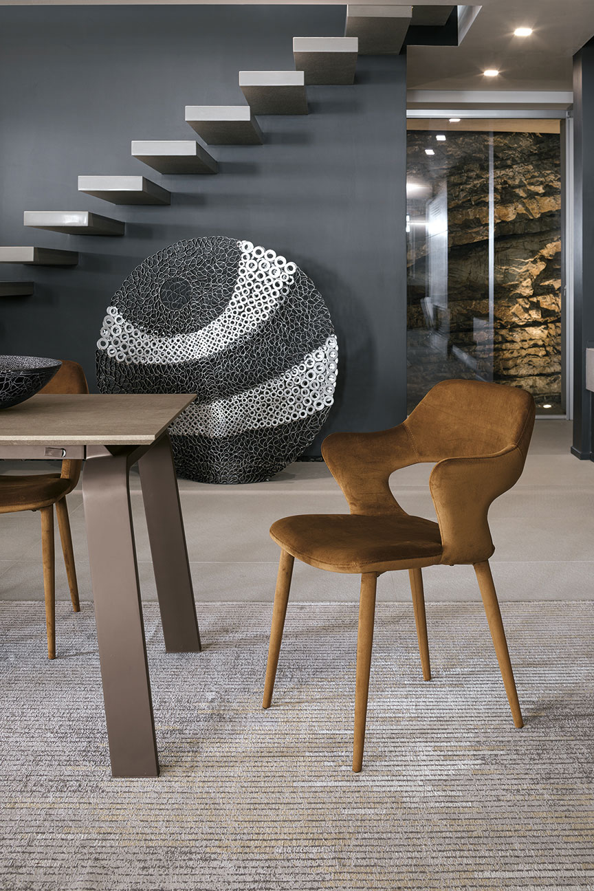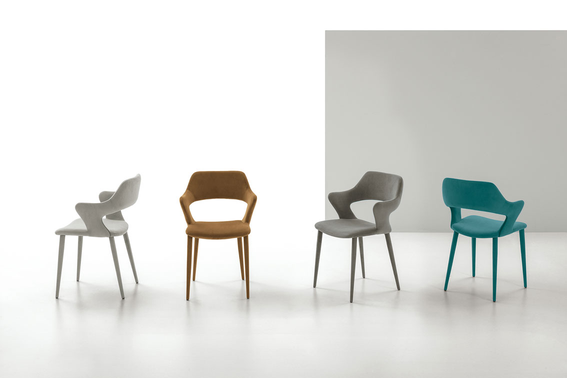 Sedia completamente rivestita in morbida microfibra effetto tessuto.