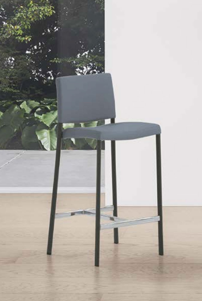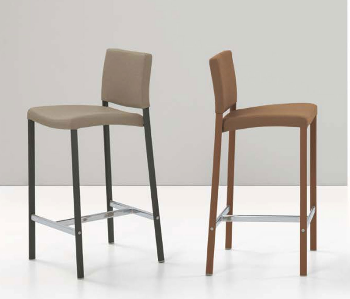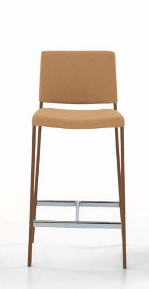 Sgabello fisso con struttura in metallo verniciato. Imbottitura in morbido tessuto Clean-Touch.